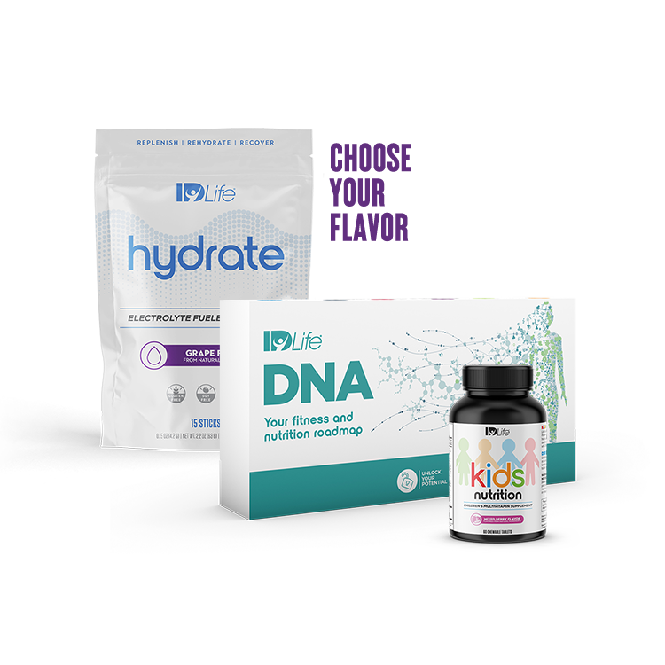 Unlock the secret of your kids' genetic makeup with the IDLife DNA Kit and receive one bottle of Kids Nutrition and a bag of Hydrate!